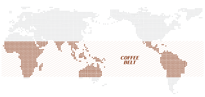커피 재배는 평균기온이 20°C로 연간 기온차가 없고 강우량은 평균 1500~1600mm인 지역이 좋은데, 이를 만족하는 지역이 바로 커피벨트 입니다.